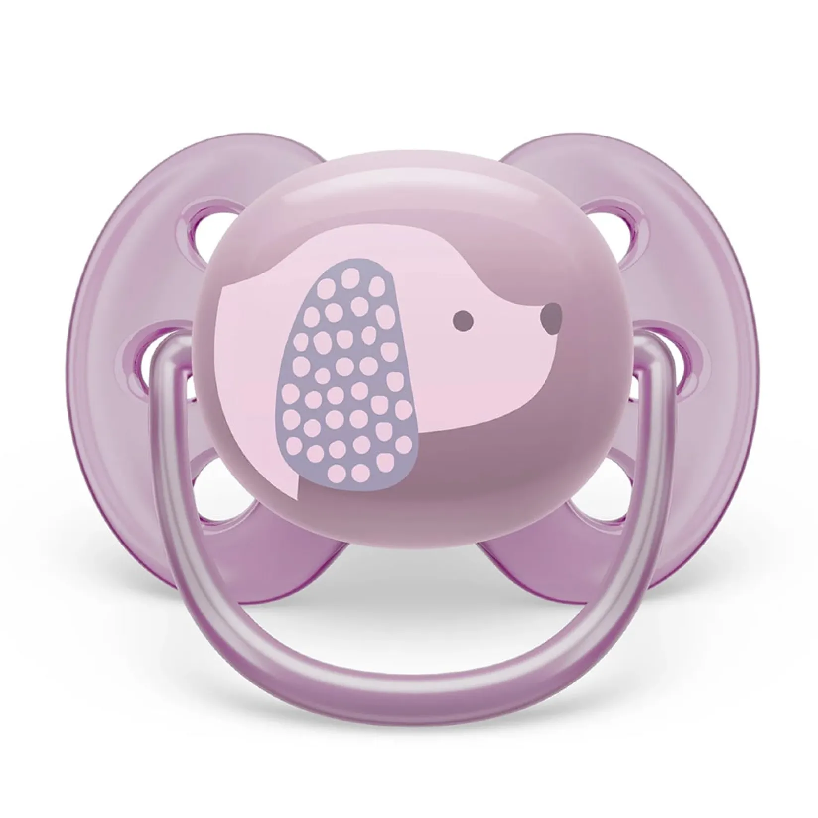 The Philips Avent Ultra Soft pacifier for babies 6-18 months is designed with a soft and flexible shield for fewer skin marks and less skin irritation. This makes it a more comfortable choice for your baby’s delicate skin.