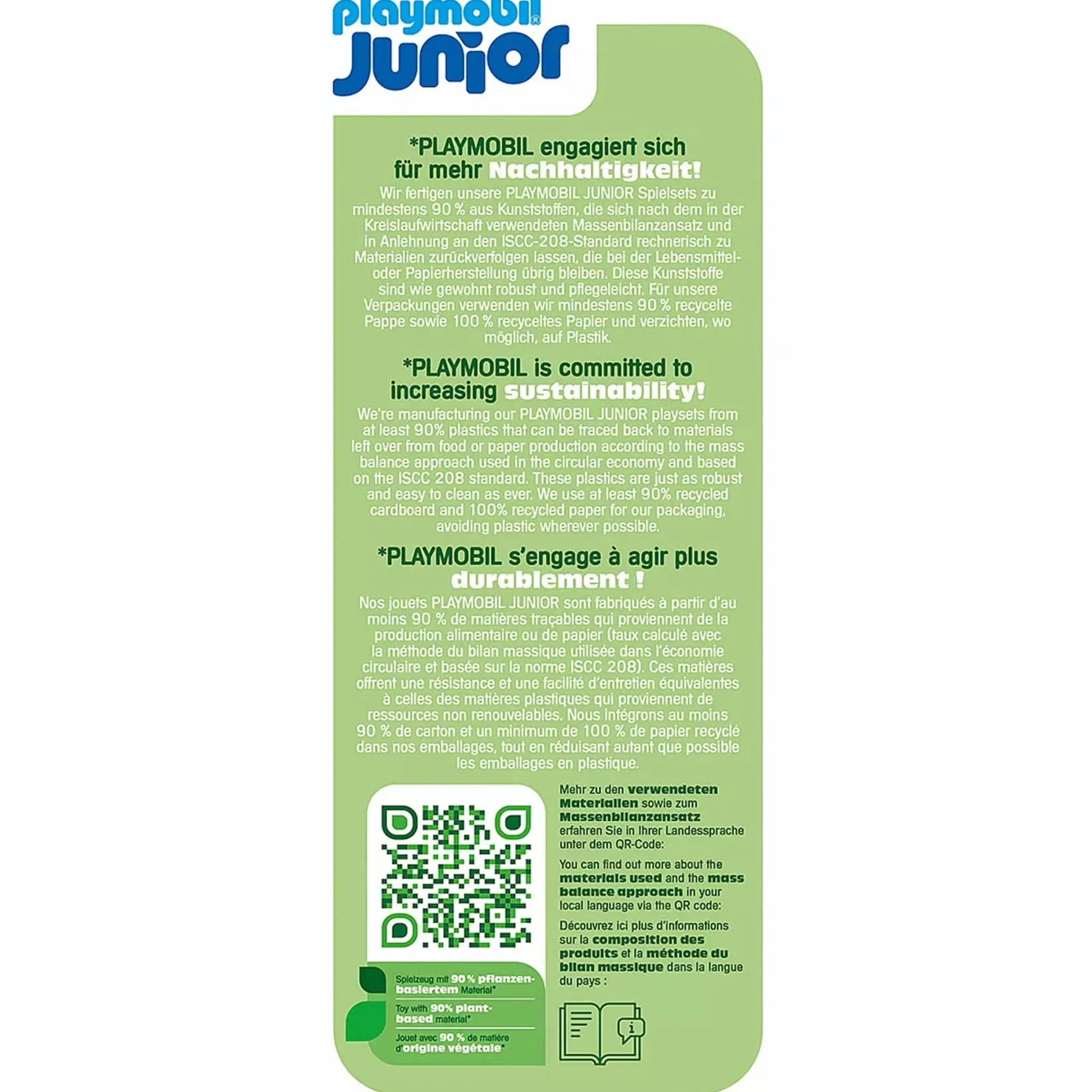 All PLAYMOBIL JUNIOR playsets are also made from more than 90% plant-based plastics, which can be traced to materials from food or paper production, using the mass balance approach in the circular economy. These plastics are as robust and easy to maintain as usual.