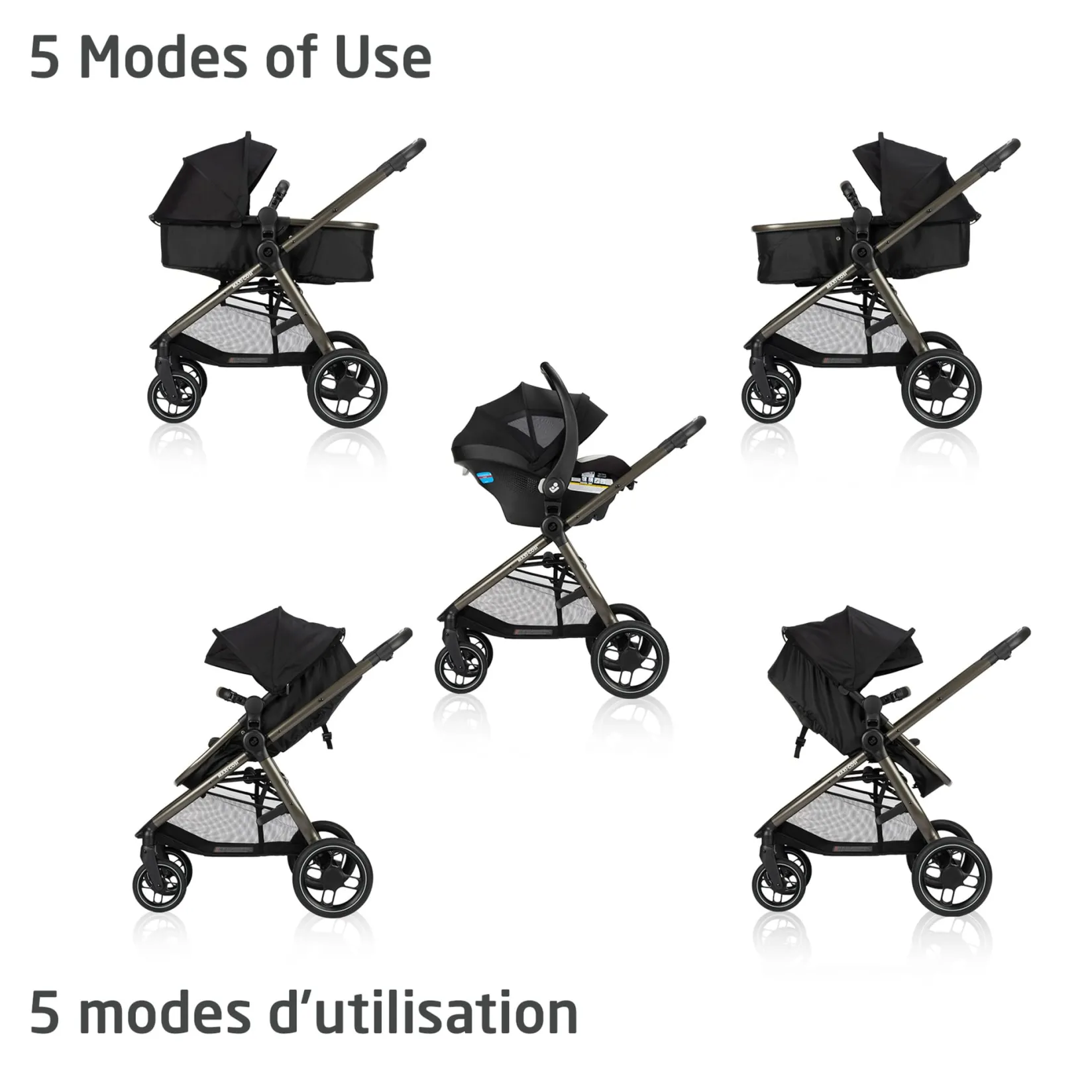 5-in-1 Travel System: Smooth transition between bassinet mode and toddler stroller, with parent-facing or world-facing options at every stage.